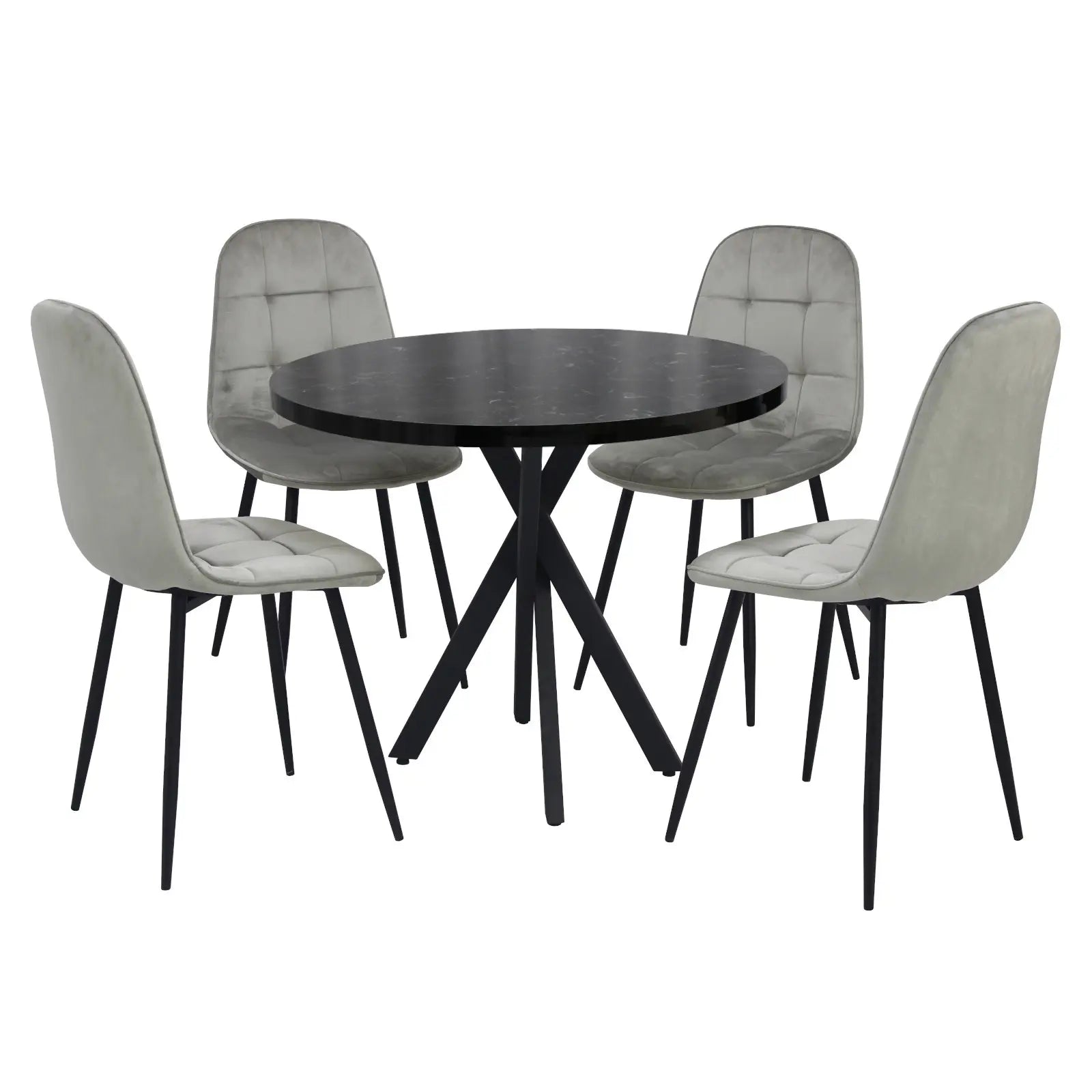 Къргла Маса Черен Мрамор с4 Стола Livo