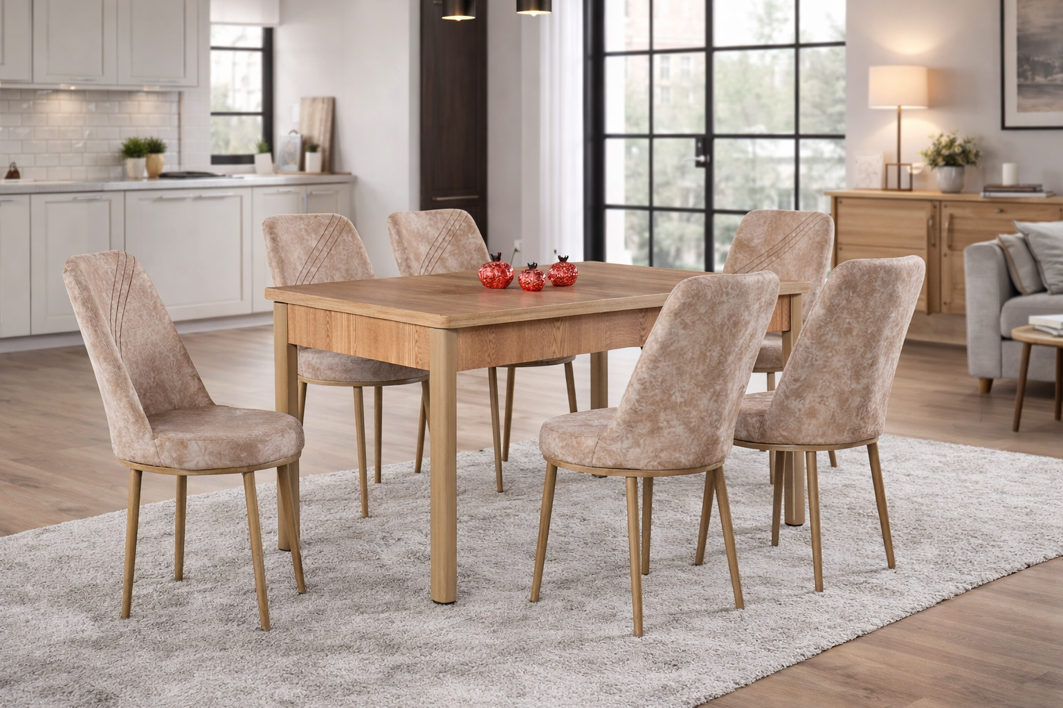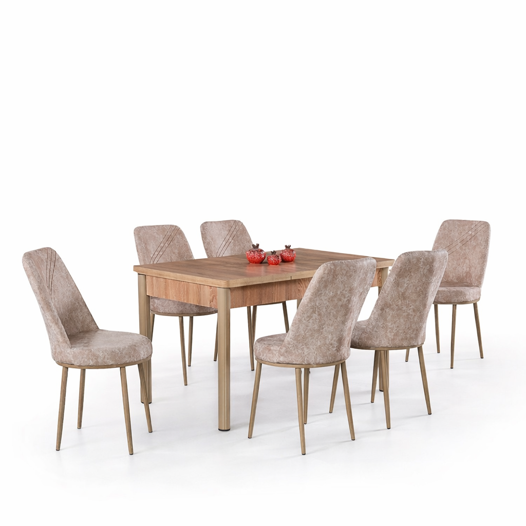 Маса Арис Дъб Сонома с6 Стола стол Uno Бежово