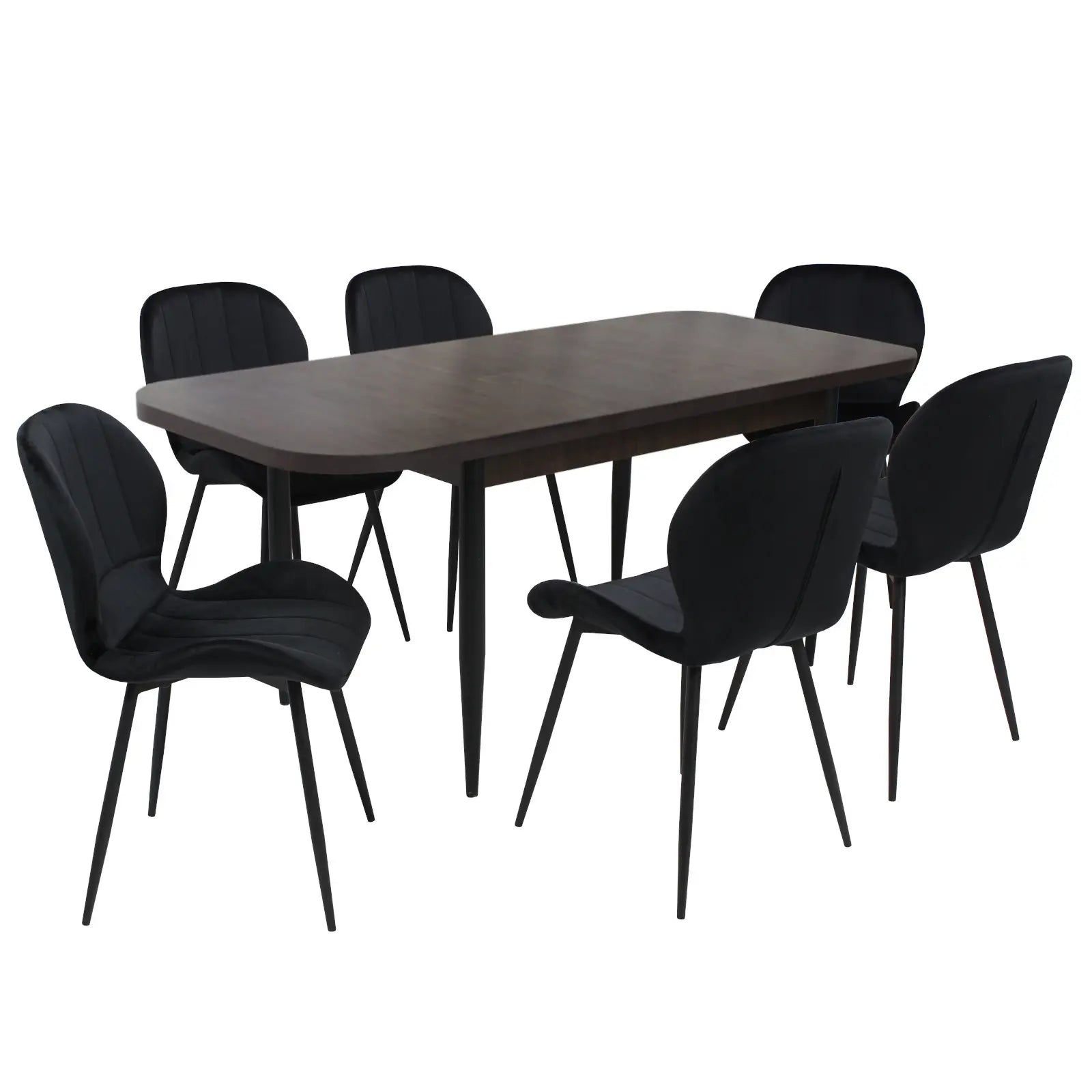 Комплектът от маса с 6 стола може лесно да се включи във вашия интериор, дори в близост до разтегателен диван.