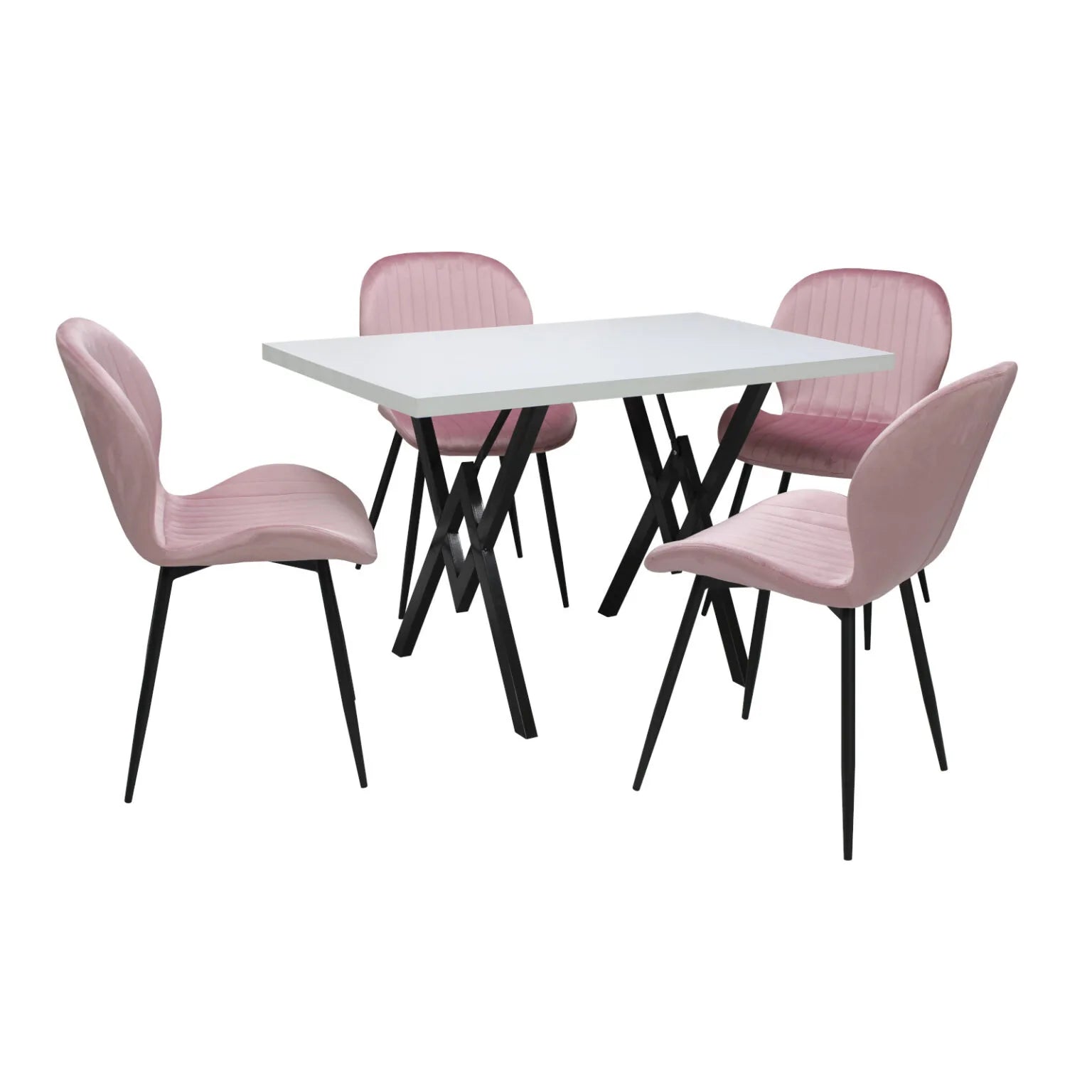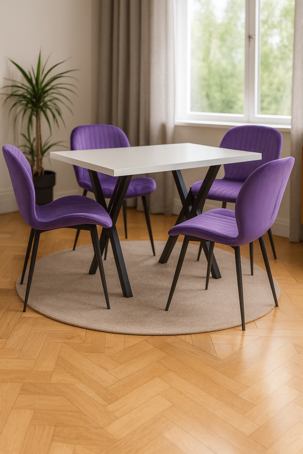 Този елегантен и здрав комплект маса и столове е перфектният избор за всякакъв интериор. Ергономичният дизайн на стола осигурява удобство при седене.