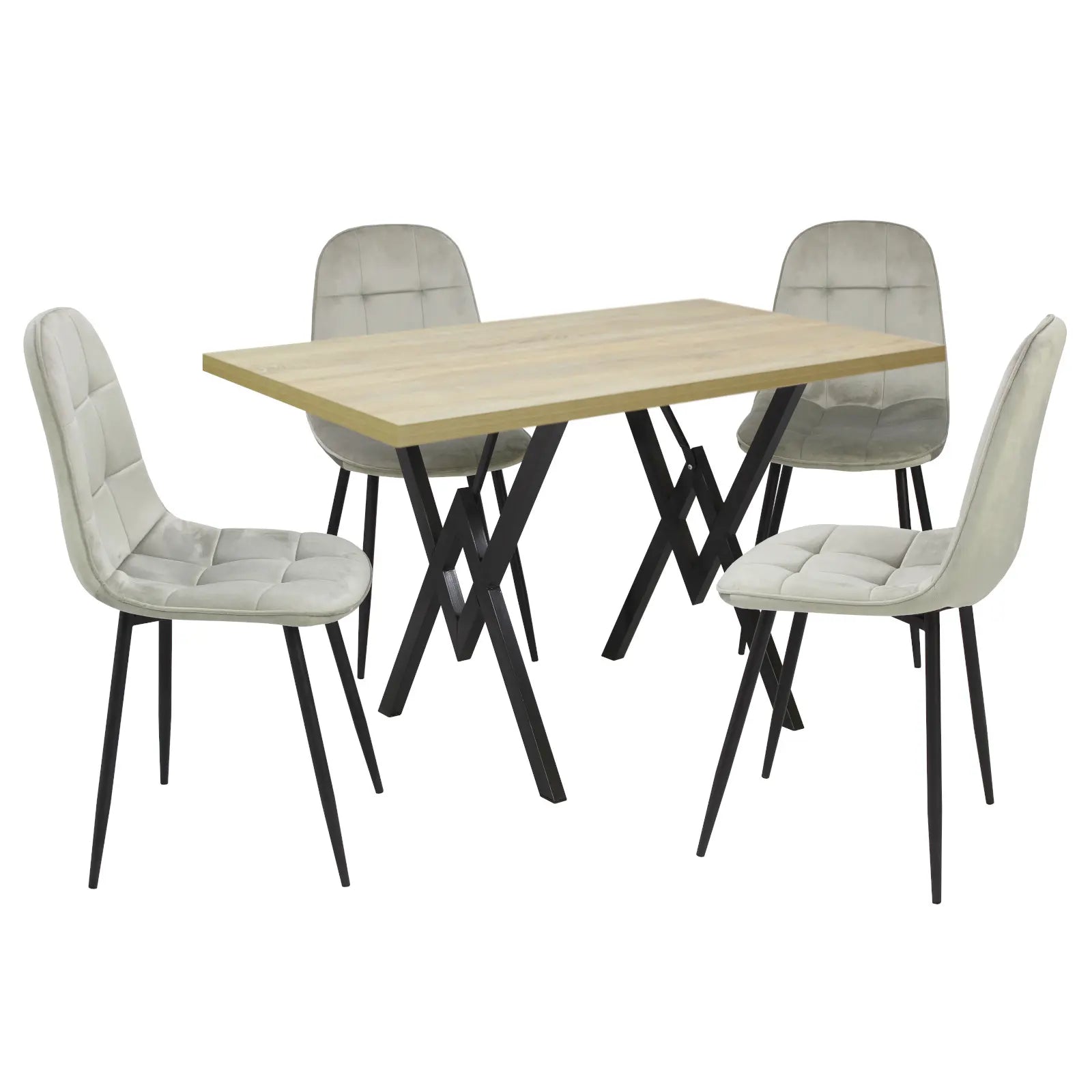 Комплектът от маса и 4 стола е чудесно допълнение към вашия дом, дори в близост до разтегателен диван.