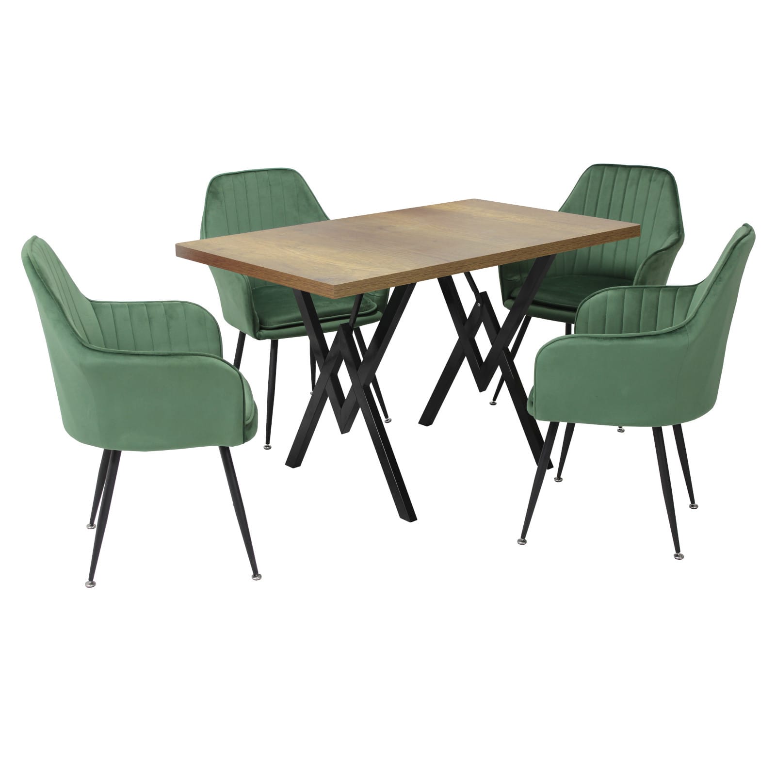 Hetti Stela комплект от фиксирана маса за хранене и 4 стола Корал съдържа фиксирана маса за хранене и 4 тапицирани стола с модерен и атрактивен дизайн, които са идеални за основните помещения в дома ви: кухня или всекидневна.