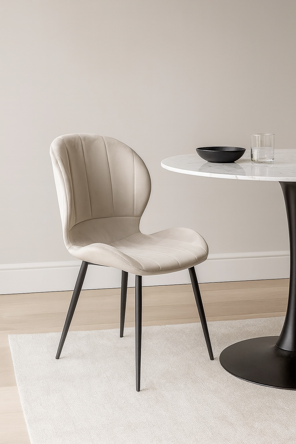 Опростен, но функционален, столът се характеризира с модерен, лесен за поддържане и удобен дизайн, подходящ за различни видове интериорен дизайн.